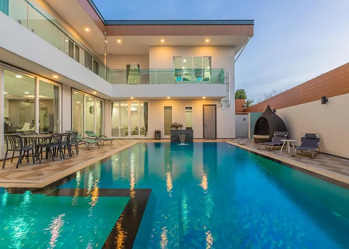 Die 芭提雅21航站楼附近8卧9卫轻奢现代别墅带独立歌房 ist mit einer voll ausgestatteten Küchenzeile sowie einem Wasserkocher, einem Kühlschrank und einem Herd ausgestattet, um Ihren Komfort zu gewährleisten. Gäste können im Restaurant Triple J Restaurant speisen, das in unmittelbarer Nähe von dieser Unterkunft in Pattaya ist. Der Flughafen U-Tapao–Rayong–Pattaya ist in 50 Minuten mit dem Auto zu erreichen. Zur Abwechslung bietet diese 9-Zimmer-Villa einen Swimmingpool sowie Billard.